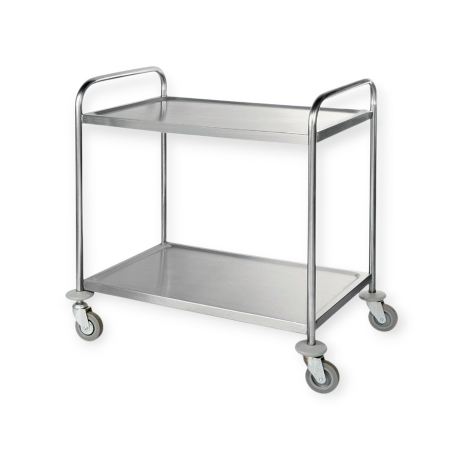 Een verrijdbare wagen met meerdere plateaus, ideaal voor het efficiënt vervoeren van servies